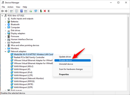 5. Как включить или отключить адаптер Wi-Fi в Windows 11 из диспетчера устройств.