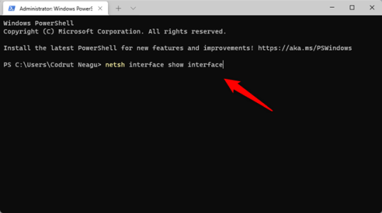 Если вы предпочитаете использовать командную строку для включения или отключения адаптера Wi-Fi в Windows 11, сначала запустите PowerShell , командную строку или терминал от имени администратора. В любом из них запустите следующую команду: netsh interface show interface.