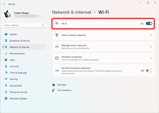 2. Как включить или отключить Wi-Fi в Windows 11 в настройках