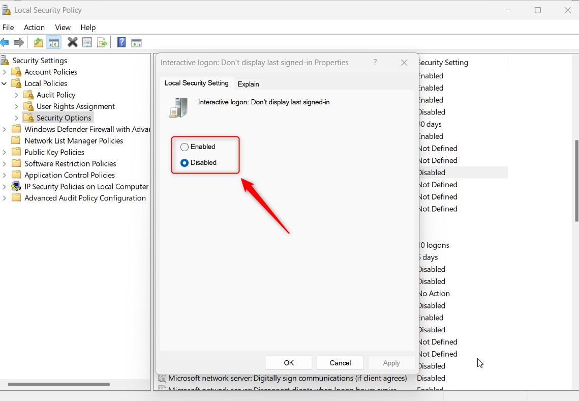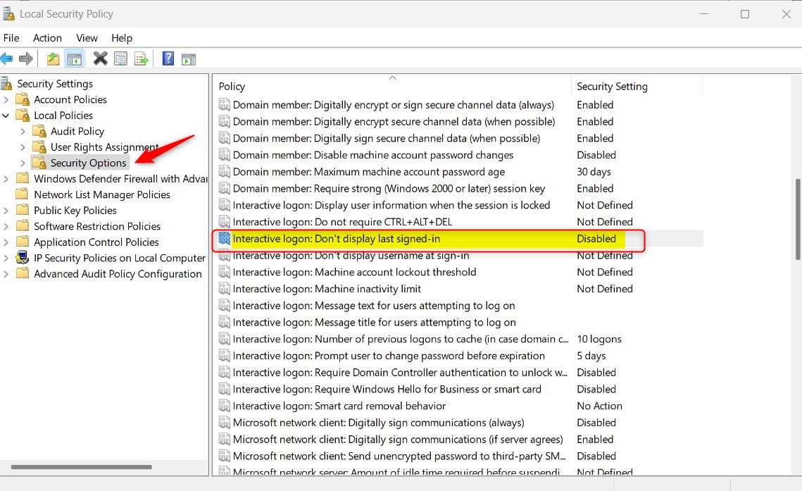 В Windows есть параметр безопасности под названием «Интерактивный вход: не отображать последний вход в систему», ранее «Интерактивный вход в систему: не отображать последнее имя пользователя», который определяет, отображать ли полное имя последнего пользователя, выполнившего вход на экран входа.