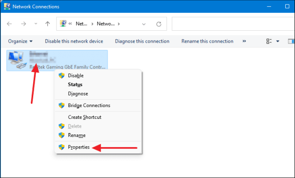 Появится новое окно с названием «Сетевые подключения». Оттуда щелкните правой кнопкой мыши сетевой адаптер ok и выберите «Свойства».