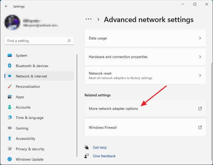 После этого снова прокрутите вниз и нажмите «Дополнительные параметры сетевого адаптера».