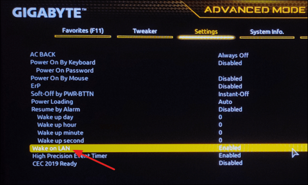 После этого вы увидите «Пробуждение по локальной сети» в нижней части списка. Убедитесь, что он включен.
