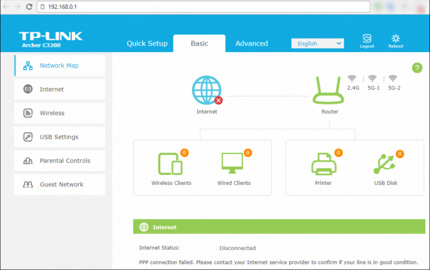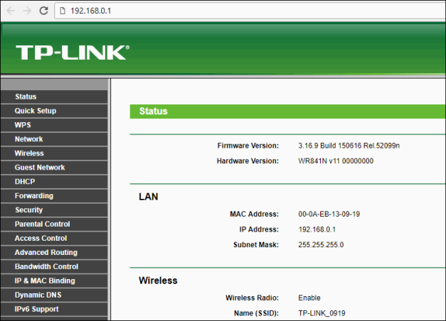 Теперь панель управления вашего роутера TP-Link должна открыться. Это может быть старая страница конфигурации TP-Link зеленого цвета: