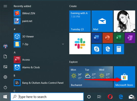 Убедитесь, что вы подключены к Интернету, а затем откройте Microsoft Store. Нажмите или коснитесь его плитки в меню «Пуск». Кроме того, вы также можете выполнить поиск по запросу «магазин Microsoft» и щелкнуть или нажать на соответствующий результат поиска.
