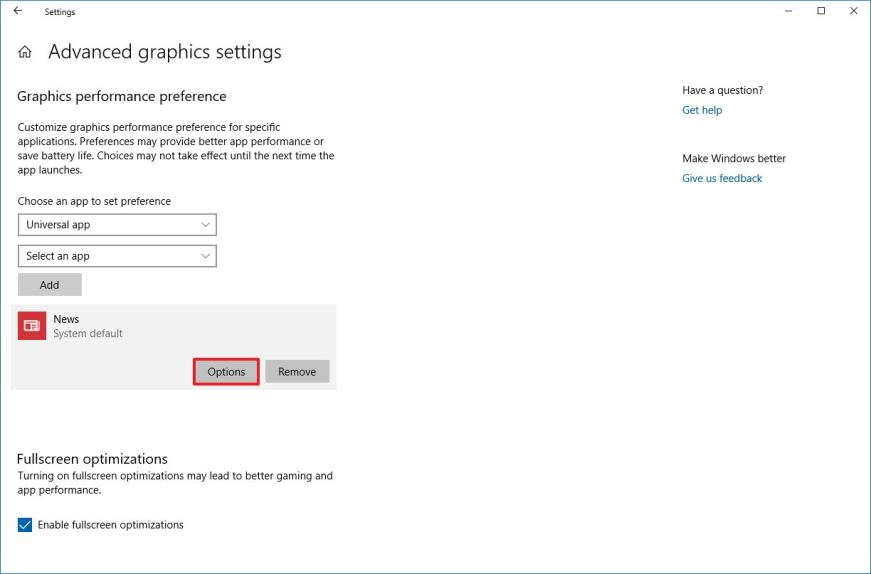 Если вы хотите запретить приложению использовать предпочтительный параметр графического процессора, просто выберите приложение из списка, нажмите кнопку «Удалить» или на странице параметров выберите параметр «Система по умолчанию».