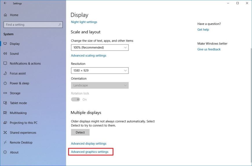 - В разделе «Несколько дисплеев» выберите параметр «Дополнительные параметры графики».