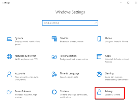 Чтобы изменить местоположение по умолчанию в Windows 10, сначала необходимо открыть приложение «Настройки». Быстрый способ сделать это — щелкнуть или нажать на кнопку в меню «Пуск». В приложении «Настройки» перейдите в раздел «Конфиденциальность».