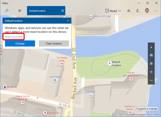 Это действие открывает приложение «Карты». В нем вы найдете диалоговое окно, в котором Windows 10 показывает вам то же сообщение об использовании вашего местоположения по умолчанию, когда более точное местоположение не может быть обнаружено на вашем устройстве.