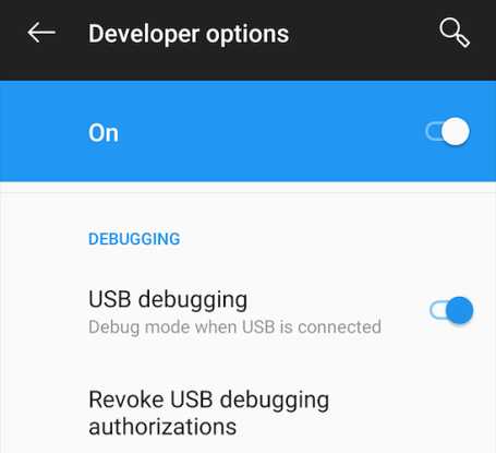 - Перейдите в «Настройки» → «Параметры разработчика» на устройстве Android и включите параметр отладки USB.