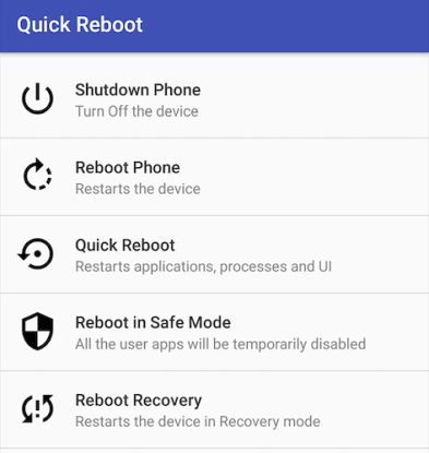 - Reboot to recovery — перезагружает ваше устройство в режим восстановления.