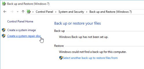 Если вы хотите быть готовым к этому неизбежному моменту, щелкните правой кнопкой мыши значок «Пуск» и выберите «Панель управления» из списка. Перейдите в раздел Безопасность системы → Резервное копирование и восстановление (Windows 7) . Не позволяйте тегу Windows 7 оттолкнуть вас: вы находитесь в правильном месте. Выберите «Создать диск для восстановления системы» в левой колонке и следуйте инструкциям.