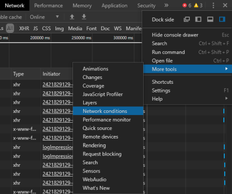 • В этом меню наведите курсор на Дополнительные инструменты, а затем выберите Условия сети.