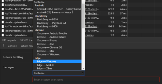 Здесь вы можете выбрать из набора определенных пользовательских агентов или даже ввести собственную строку пользовательского агента. Это так просто.