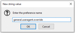 • После нажатия клавиши Enter в следующем запросе будет запрошено значение новой строки. Значение должно быть точным именем строки агента пользователя, которую вы хотите использовать. Вы можете использовать что-то совершенно нестандартное или найти миллионы действительных строк пользовательского агента на WhatIsMyBrowser.com.