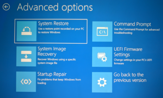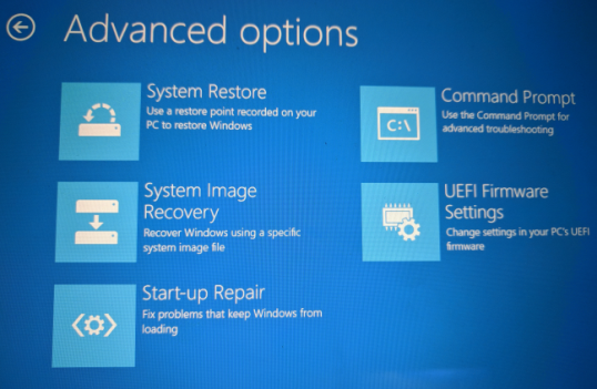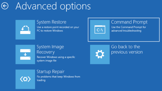 На экране «Дополнительные параметры» выберите «Командная строка».