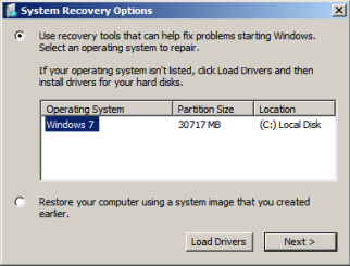 Затем ремонтный диск сканирует операционные системы, доступные на вашем компьютере, и выводит их список. Выберите Windows 7 и нажмите «Далее».
