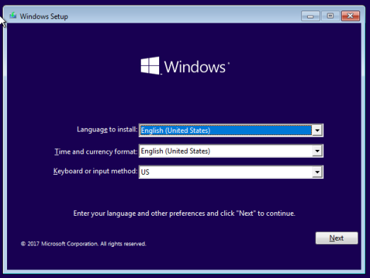 Загрузите программу установки Windows и выберите язык и клавиатуру, которые хотите использовать. Затем нажмите Далее.