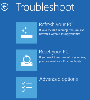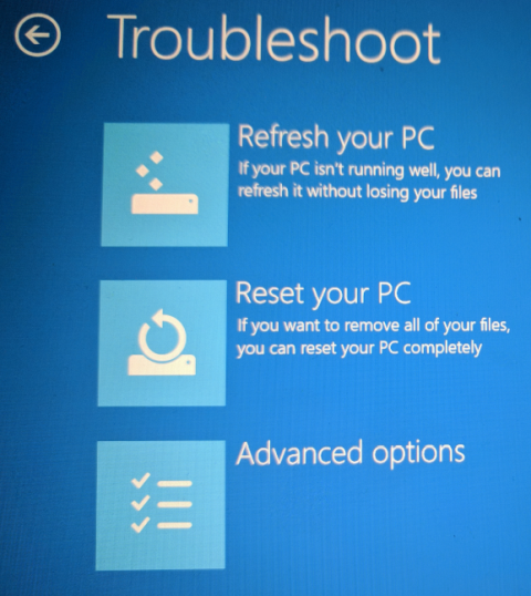 Вам предоставляется несколько вариантов устранения неполадок. Выберите Дополнительные параметры.