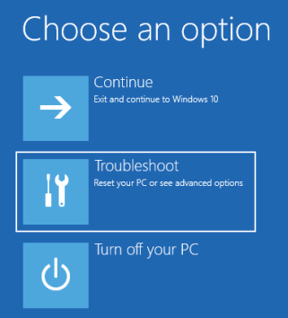 Затем вы можете выбрать один из нескольких вариантов. Выберите Устранение неполадок.