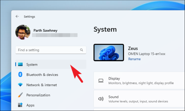 После этого убедитесь, что вы выбрали вкладку «Система» на левой боковой панели.