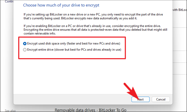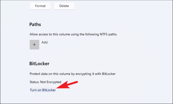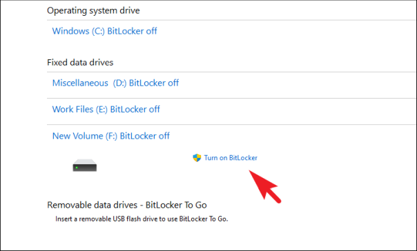 Затем снова нажмите «Включить BitLocker» после только что созданного диска. Это откроет отдельное окно на вашем экране.
