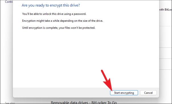 Затем нажмите кнопку «Начать шифрование», чтобы начать процесс.