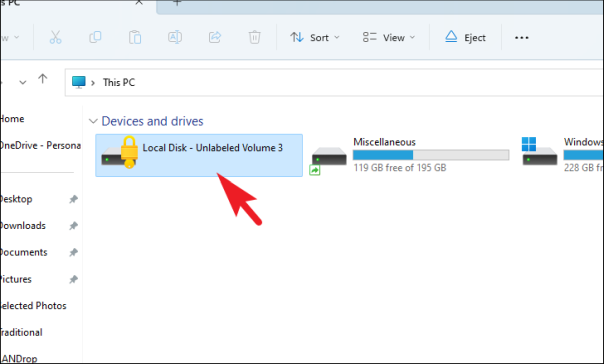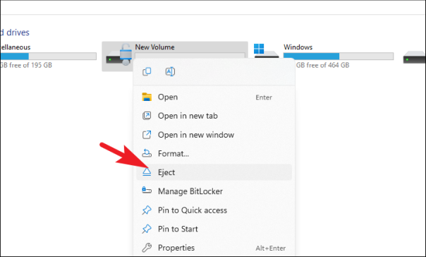 Чтобы заблокировать диск, щелкните его правой кнопкой мыши и выберите параметр «Извлечь».