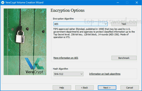 - Выберите параметры шифрования. Настройки AES и SHA-512 по умолчанию подходят для большинства целей.