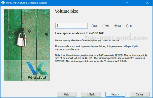 - Введите размер вашего тома. Он должен быть достаточно большим, чтобы вместить ваши конфиденциальные файлы.
