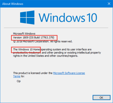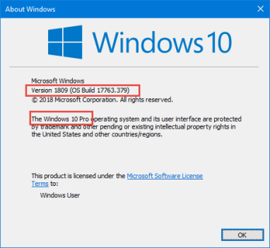Когда было выпущено обновление для Windows 10 за октябрь 2018 года, оно имело номер версии 1809 и сборку ОС со значением 17763.1. После первого обновления до Windows 10 сборка ОС изменилась на 17763.55, а номер версии остался прежним. После последнего обновления для Windows 10 (сделанного нами в марте 2019 года) номер сборки стал 17763,379.