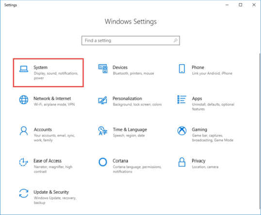 Этот метод работает во всех версиях Windows 10, но все выглядит по-разному, в зависимости от версии Windows 10, которая у вас есть. Сначала откройте приложение «Настройки» (самый быстрый способ — нажать Windows + I на клавиатуре). В настройках Windows перейдите в «Система».