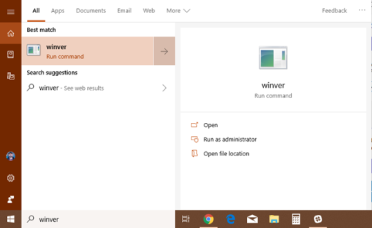 Этот метод быстрый и работает одинаково, независимо от того, какая у вас версия Windows 10: используйте поле поиска рядом с кнопкой «Пуск», введите winver и нажмите или коснитесь результата поиска winver.