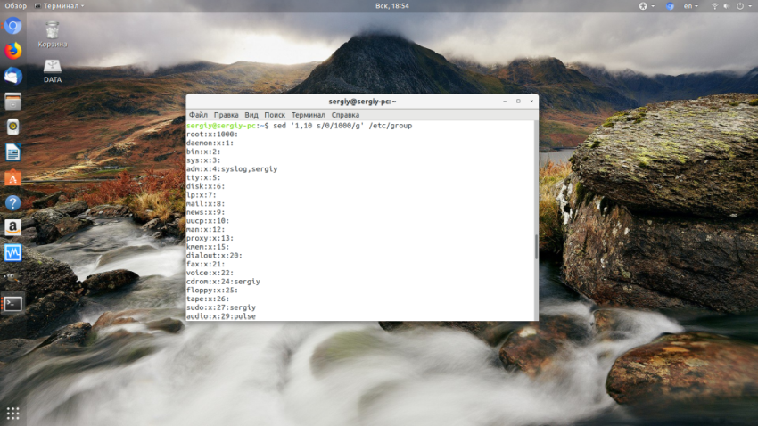 - s/что_заменять/на_что_заменять/опции — замена символов, поддерживаются регулярные выражения;