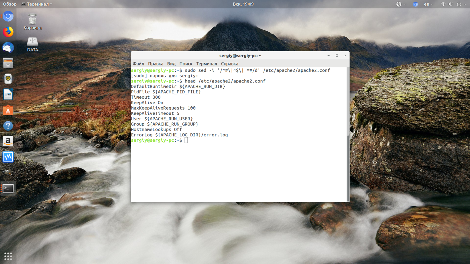 sed '/^#|^$| *#/d' /etc/apache2/apache2.conf