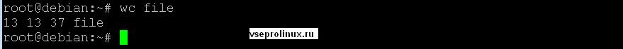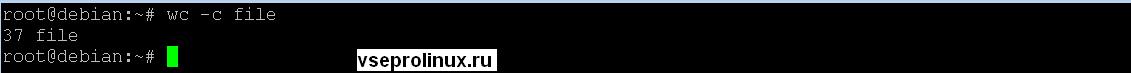 Сосчитаем сколько байт в файле под названием «file». Для этого будем использовать ключ «-с».