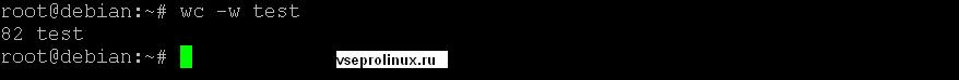 Выведем на экран количество слов в документе «test». Для этого будем использовать аргумент -w.
