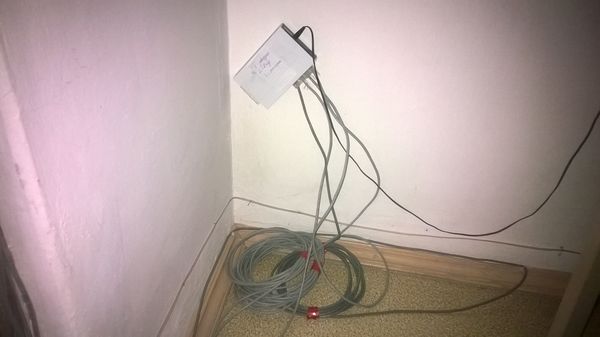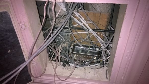 Когда сняли навесной потолок в одном помещении, выяснилось, что кабель ЛВС проходит через лампочку. Вокруг еще были намотаны провода пожарной сигнализации. Это показательный пример перепутки электрических проводов и слаботочки наблюдается повсеместно. Проблема с разделением проводки осталась во многих местах даже после постройки новой сети.