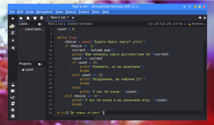 Кросс-платформенная IDE, написанная на Python. Распространяется бесплатно и имеет открытый исходный код. Очень компактная среда разработки, которая, тем не менее, обладает набором всех необходимых функций.