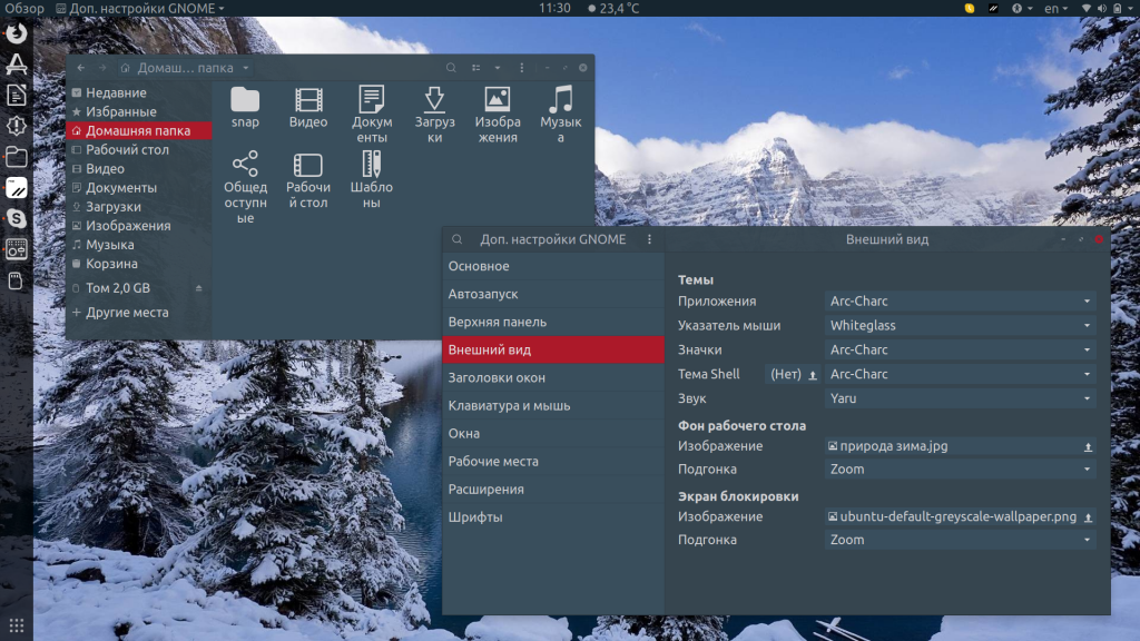 Загрузить тему и набор иконок Arc-Charc для Ubuntu