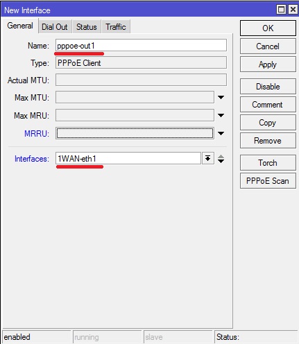 Interfaces — физический интерфейс подключения к серверу PPPoE