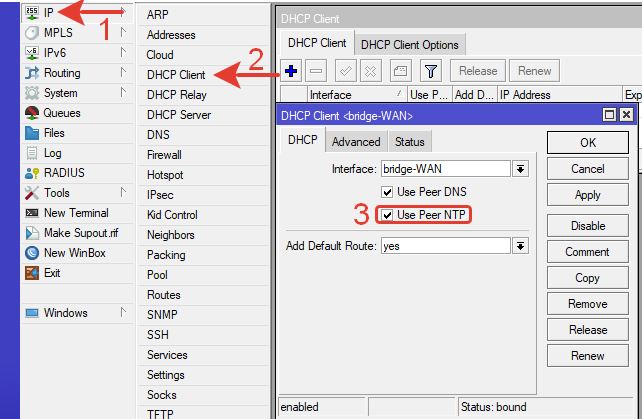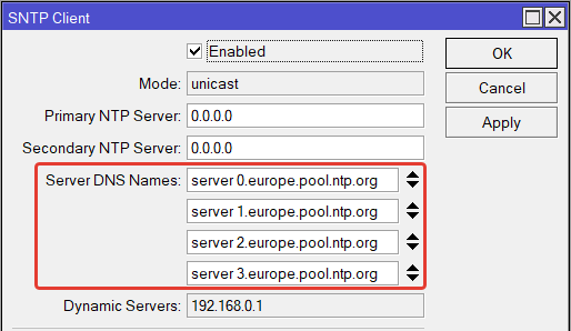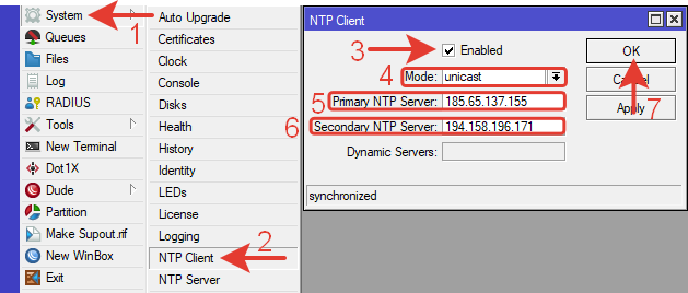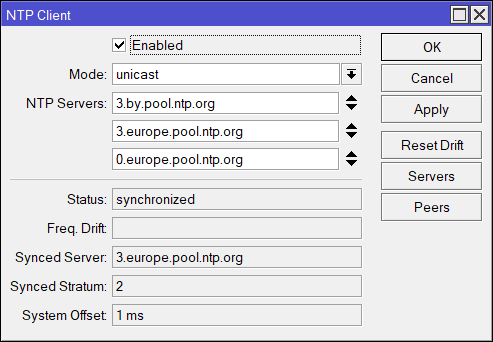 Этот вариант предназначен только для синхронизации самого микротика из сервисов NTP в интернете. Он немного отходит от темы инструкции, рассмотрим его кратко. Дополнительно скачивать ничего не нужно.