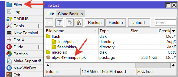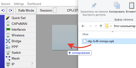 Находим в скаченном архиве пакет NTP и перетягиваем его в роутер.
