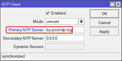 Primary NTP Server: 88.147.254.230  – IP-адрес первичного NTP сервера.