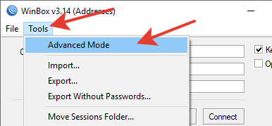 В выпадающем меню вкладки Tools основного окна WinBox можно перейти в расширенный режим – Advanced Mode. В этом режиме появляется несколько дополнительных полей.