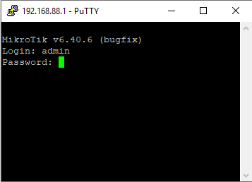3.Вводим учетные данные. По умолчанию у MikroTik логин admin, пароля нет. Нажимаем кнопку Вввод на клавиатуре.
