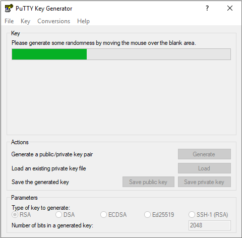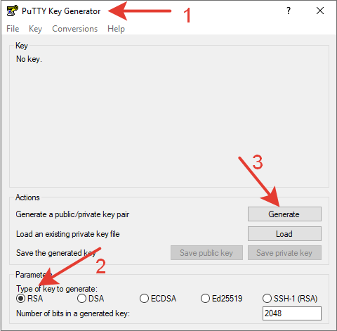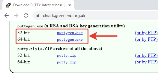 1.Создадим пару ключей. Сделать это можно в генераторе ключей PuTTY. Скачиваем puttygen.exe в соответствии с разрядностью Windows с сайта разработчика.