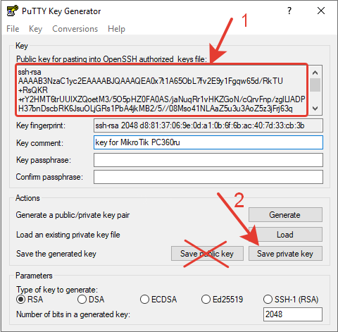 -сохраняем публичный ключ, скопировав содержимое верхнего поля в отдельный файл (можно без расширения или .txt);