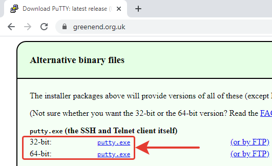 1.Скачиваем PuTTy в соответствии с разрядностью Windows с сайта разработчика.