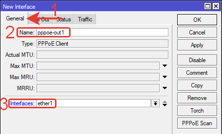Name: pppoe-out1 – имя нового интерфейса (можно указать любое латиницей)